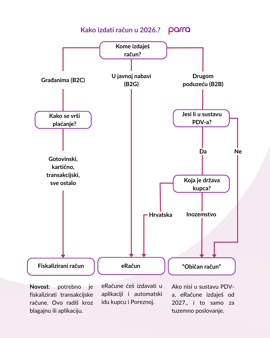 U 2026. godini način izdavanja računa ovisi prvenstveno o tome kome se račun izdaje. Postoje tri osnovne skupine primatelja: